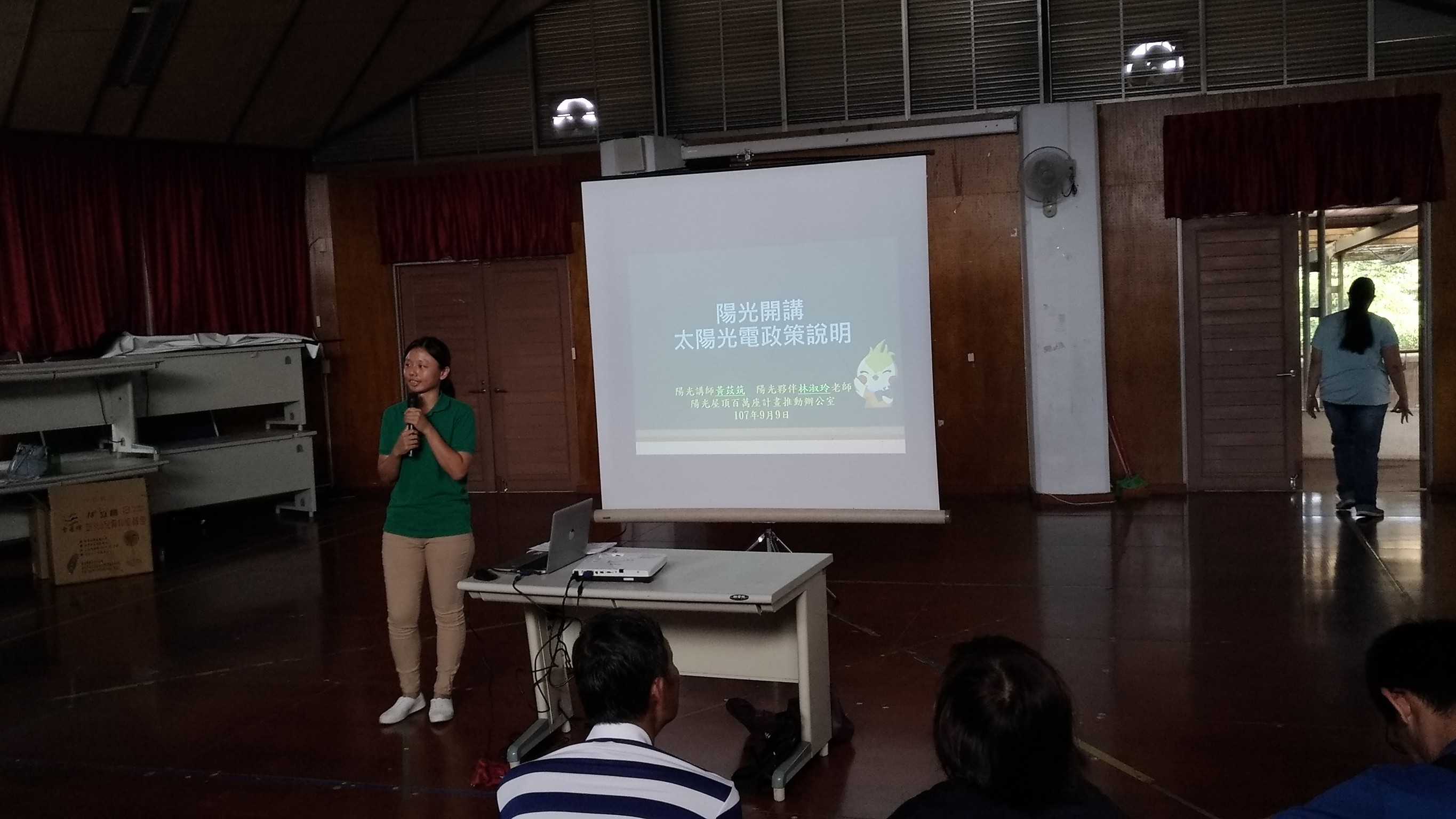 為擴大宣傳層面,提升社會各界對太陽光電發電設備設置的認知,推出「陽光開講」服務活動。藉由多元化、在地化管道增加全民對太陽光電之瞭解,